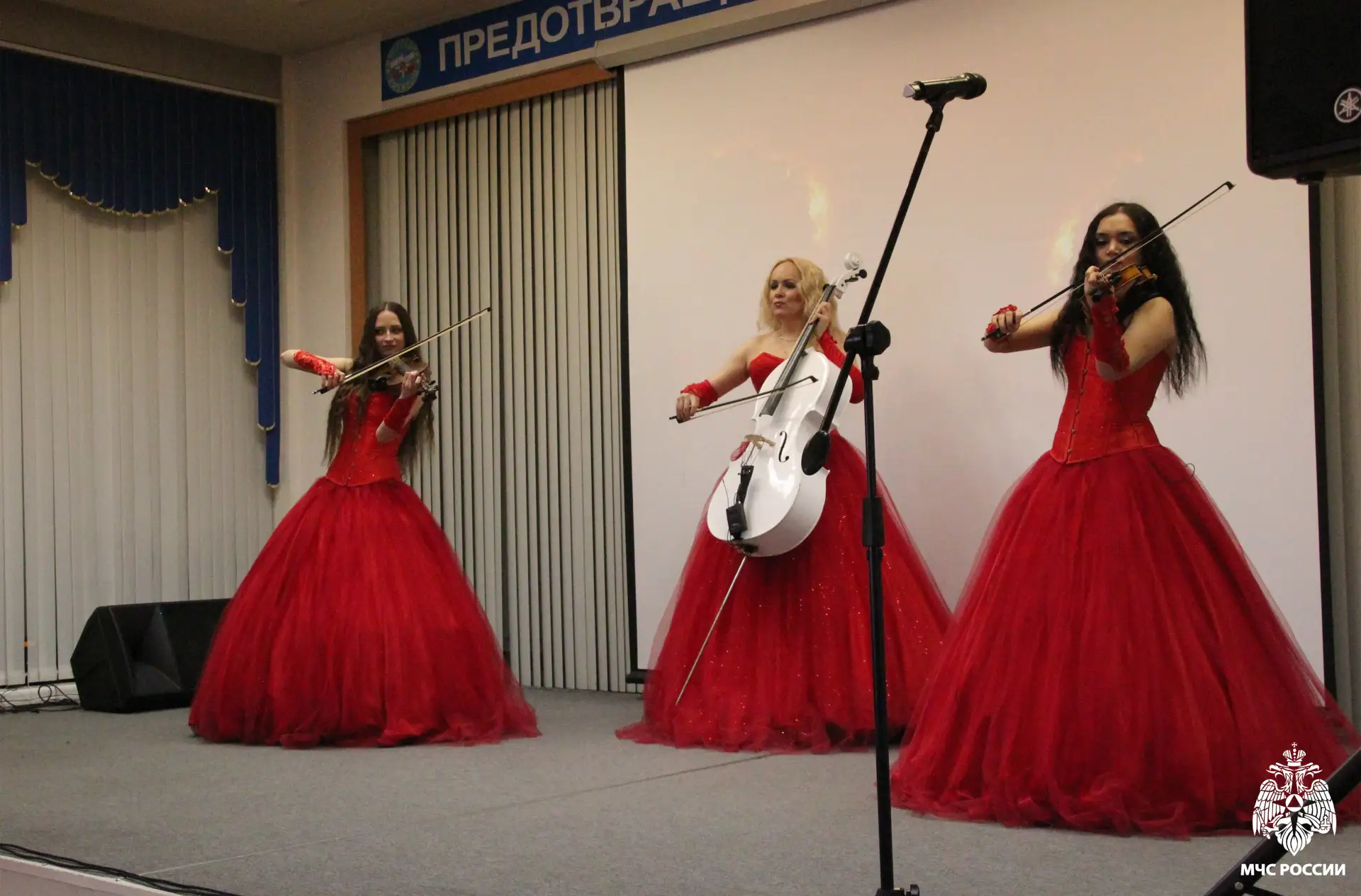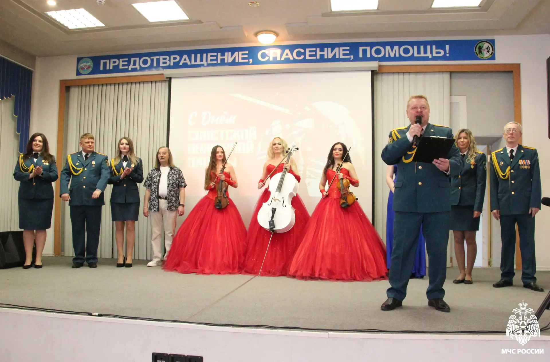 В честь ветеранов состоялся праздничный концерт с выступлением ансамбля «Искорка» Главного управления МЧС России по Новосибирской области, специалистов ведомства и приглашенного струнного трио «Silenzium».
