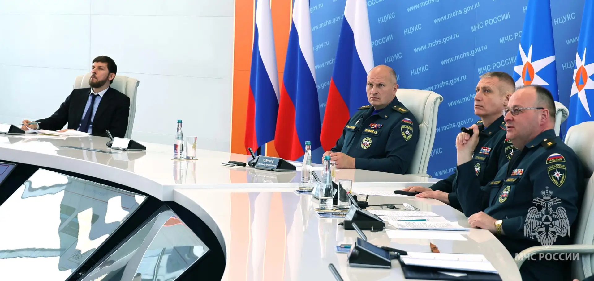 Глава МЧС России Александр Куренков и помощник Президента страны Руслан Эдельгериев обсудили вопросы мониторинга природных пожаров