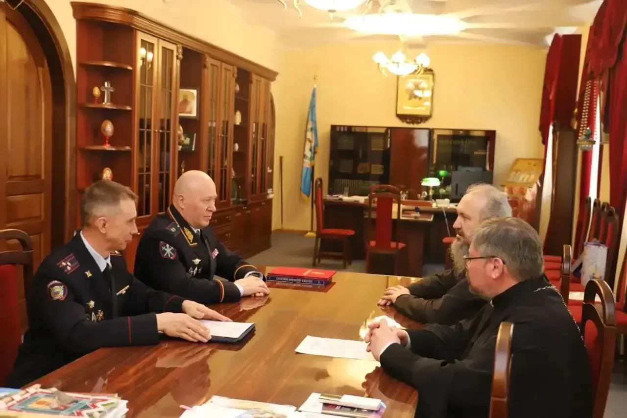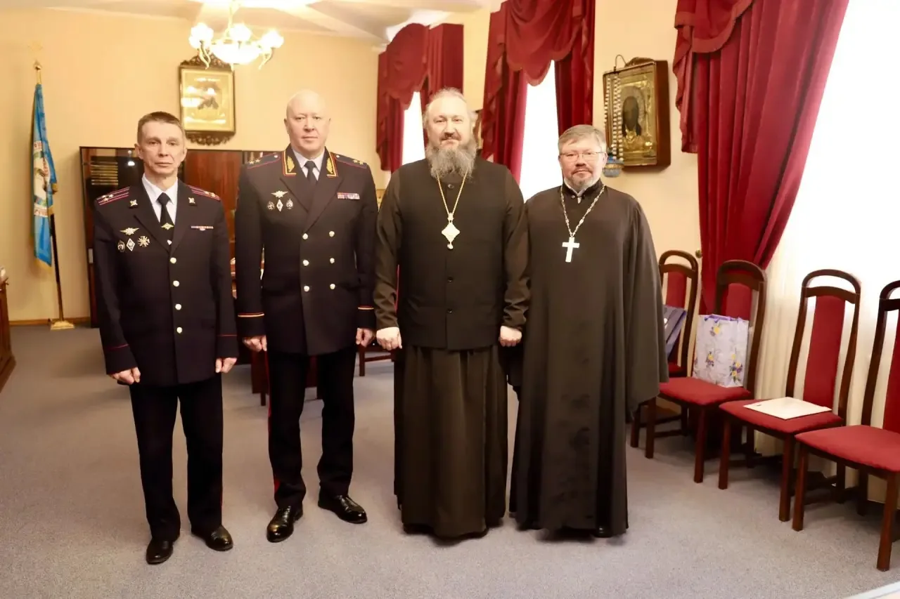 Рабочая встреча была посвящена обсуждению взаимодействия полиции и церкви, вопросам социально-политической обстановки региона. В ходе беседы Андрей Кульков подробно рассказал об основных направлениях деятельности органов внутренних дел, подчеркнув значимость патриотической работы и участия полиции в мероприятиях, направленных на сохранение традиционных ценностей и укрепление общественного порядка.