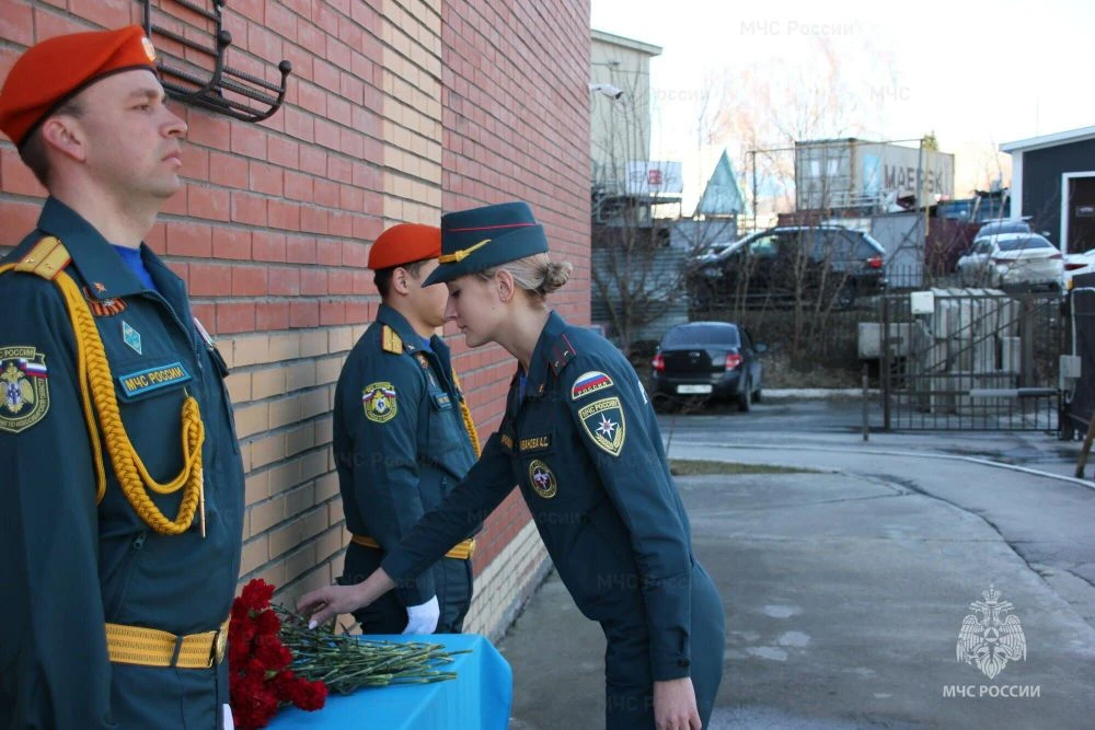 цветы возложили к мемориальным доскам и памятникам, в том числе у пожарноспасательных частей и на улицах, названных в честь героев.