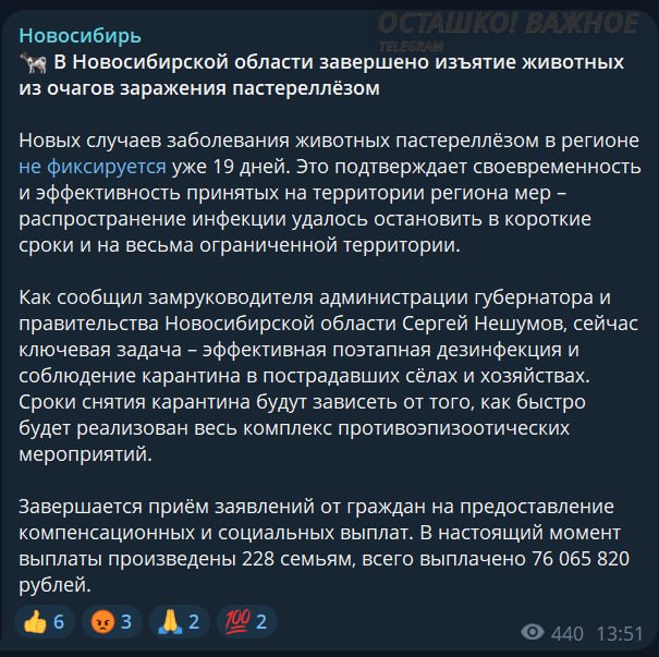 Глава Россельхознадзора Сергей Данкверт ранее заявлял, что болезнь протекала в «нестандартной форме» и якобы начала мутировать, из-за чего потребовались жёсткие меры. Сейчас распространение инфекции остановлено.