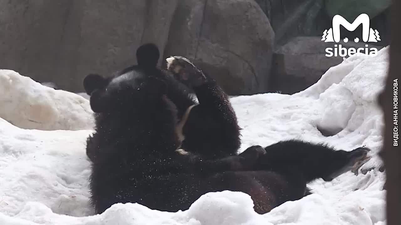 Уссурийские мишки Фима и Дуся кайфуют в Новосибирском зоопарке. Запоминаем, повторяем в нерабочее время.