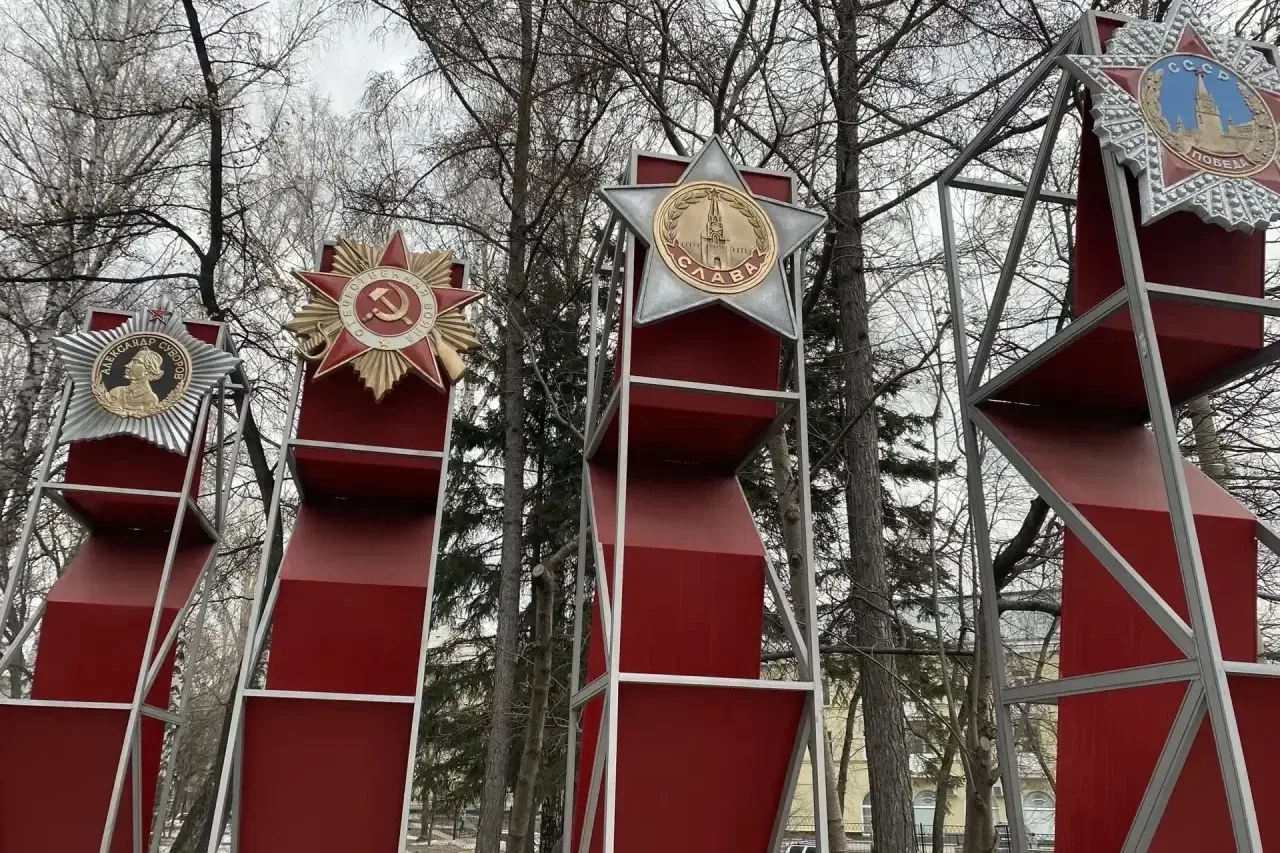Огромные ордена обновили на стелах «Звезда» в Павловском сквере