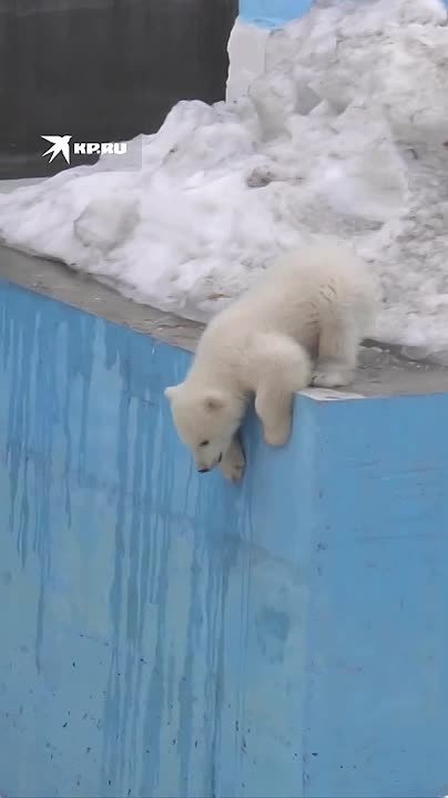 Он мялся, перебирал лапами — и всё же решился. Ради мамы этот малыш пошёл на отчаянные меры. Настоящий экстремал!