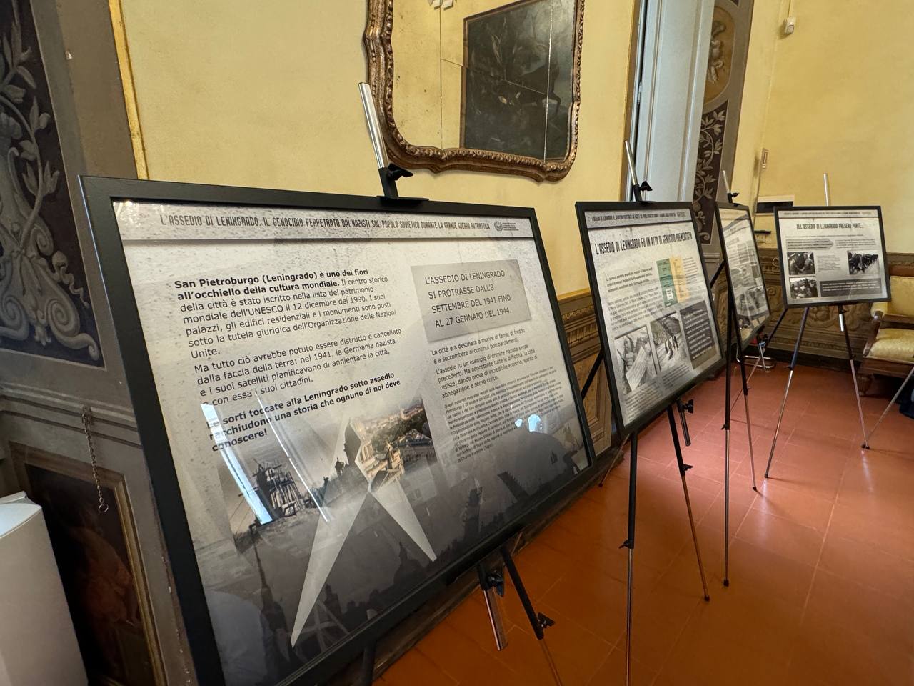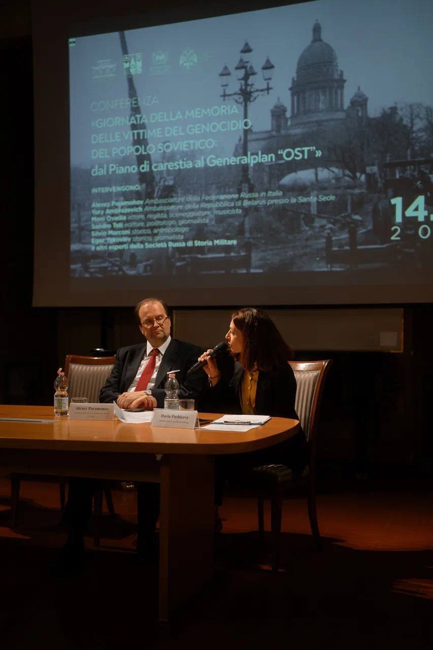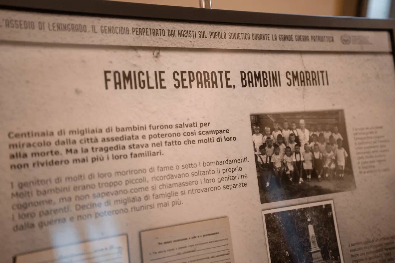 Экспозиция Национального центра исторической памяти при Президенте Российской Федерации «Блокада Ленинграда — нацистский геноцид советского народа во время Великой Отечественной войны»* организована при поддержке МИД России и Посольства России в Италии.