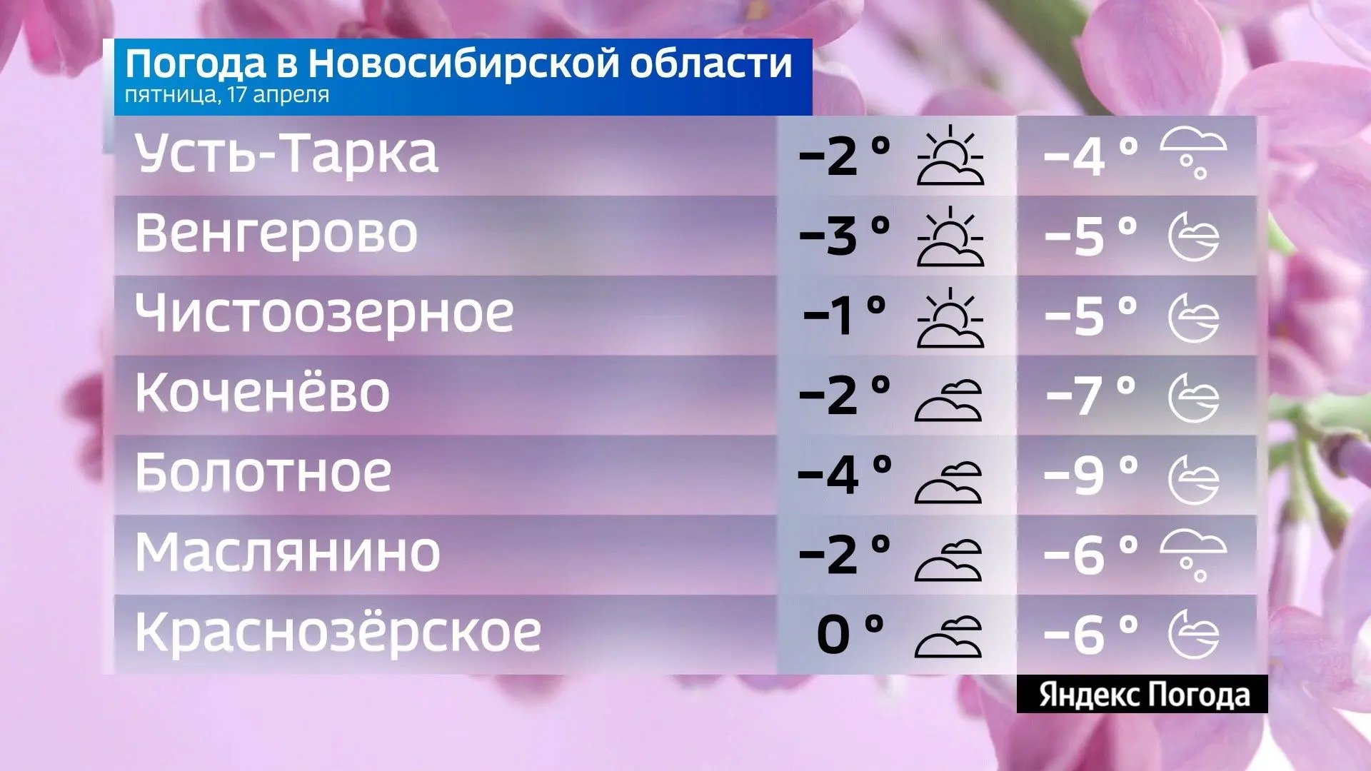 Прогноз погоды на 17 апреля 2026 года в Новосибирской области.