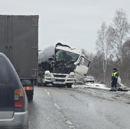 Под Новосибирском, возле Болотного, две фуры столкнулись на трассе, парализовав движение