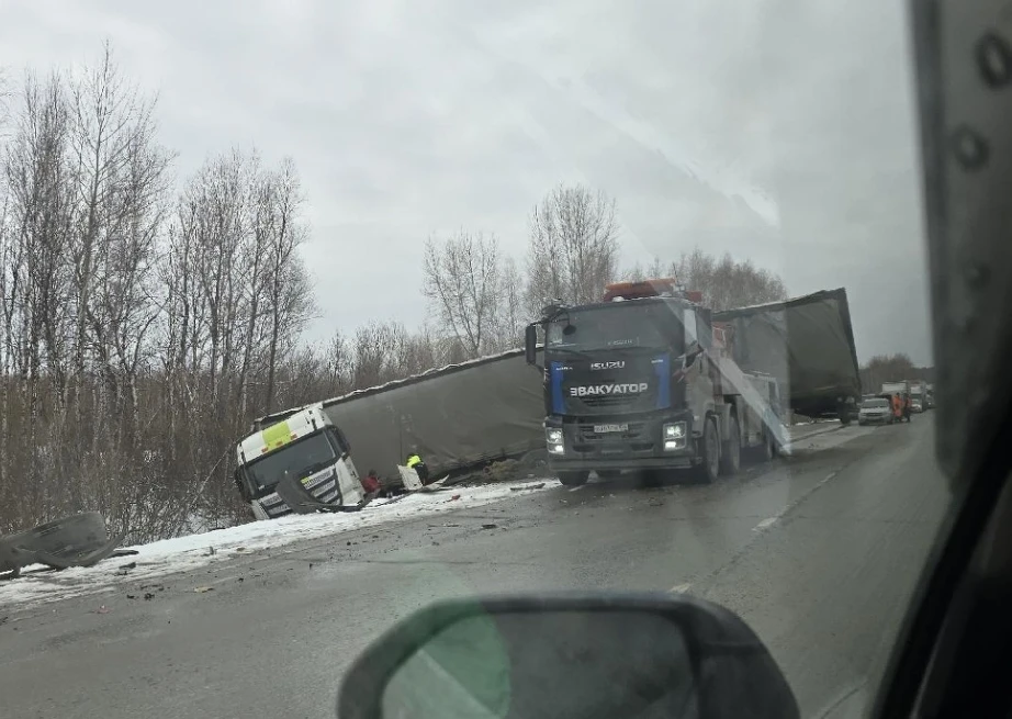 Под Новосибирском, возле Болотного, две фуры столкнулись на трассе, парализовав движение