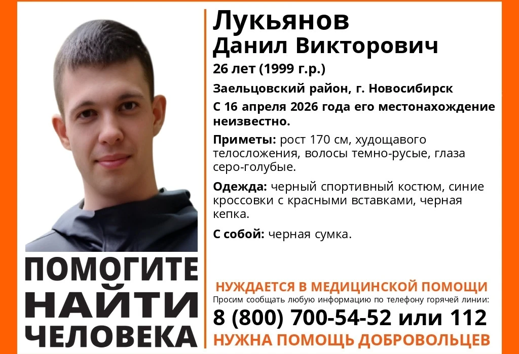 В Заельцовском районе Новосибирска 16 апреля без вести пропал 26-летний Данил Лукьянов. Его уже ищет поисково-спасательный отряд «ЛизаАлерт», но давайте и мы поможем.