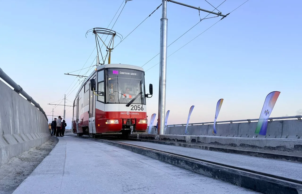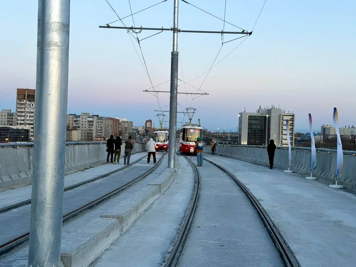 Сегодня утром пассажирские трамваи начали курсировать по эстакаде четвертого моста. Протяженность этого сооружения достигла 632 метров. Общая длина рабочего отрезка, который теперь используется для перевозки пассажиров, составила почти полтора километра.