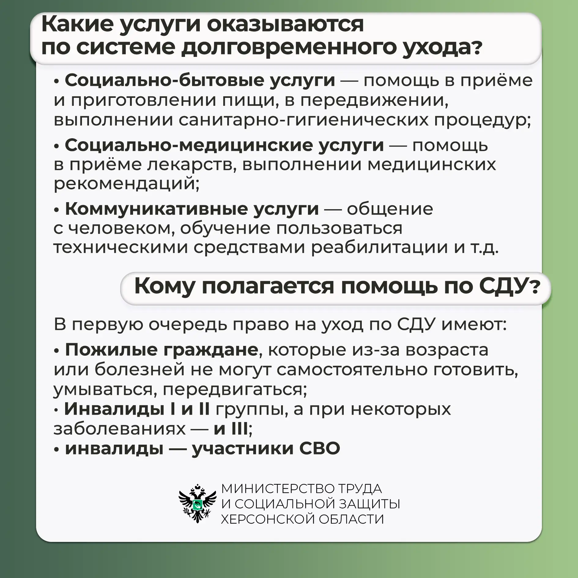 Получить консультации по вопросам системы долговременного ухода в Херсонской области можно по телефонам комплексных центров социального обслуживания населения.
