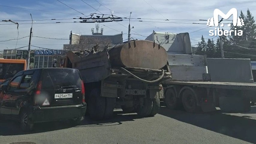 Два большегруза столкнулись у ДК "Чкалова" в Новосибирске.