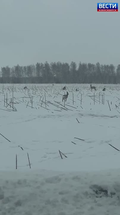 Новосибирцы заметили настоящее нашествие косуль по дороге в село Баган.