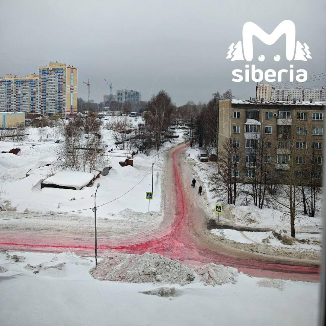 Дороги в Первомайском районе Новосибирска окрасились ярко-красный цвет из-за повреждения груза с колером, который перевозила служба доставки, сообщили ТАСС в пресс-службе ГК «Деловые Линии».