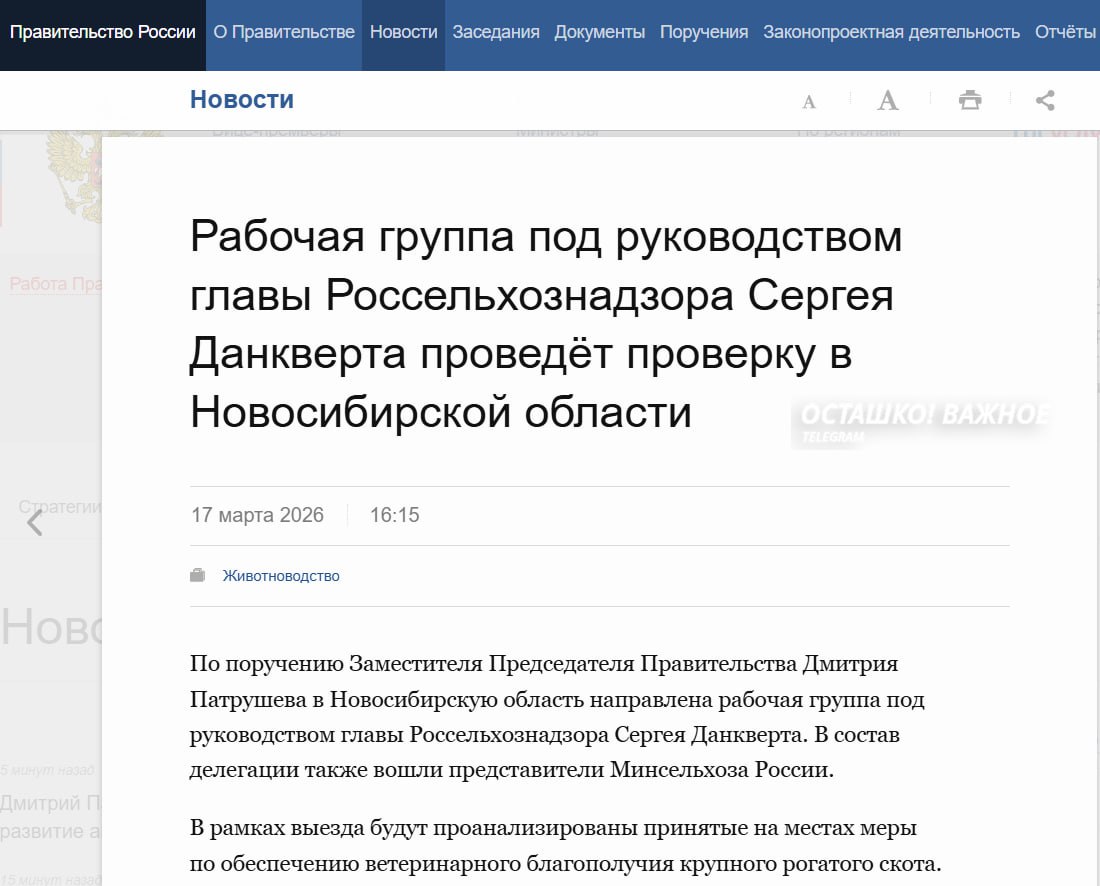 Сообщается, что в регион отправлена рабочая группа под руководством главы Россельхознадзора Сергея Данкверта по поручению вице-премьера Дмитрия Патрушева.