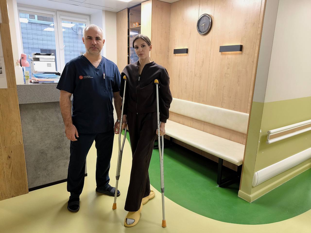 Юлии диагностировали разрыв мениска коленного сустава. Ей требовалась операция, причём первая в её жизни. Врачи провели артроскопическую операцию — мини-инвазивное вмешательство с зашиванием повреждённой части мениска с помощью специальных имплантов. Всё прошло под контролем камеры и источника света, что позволило сделать операцию максимально щадящей.