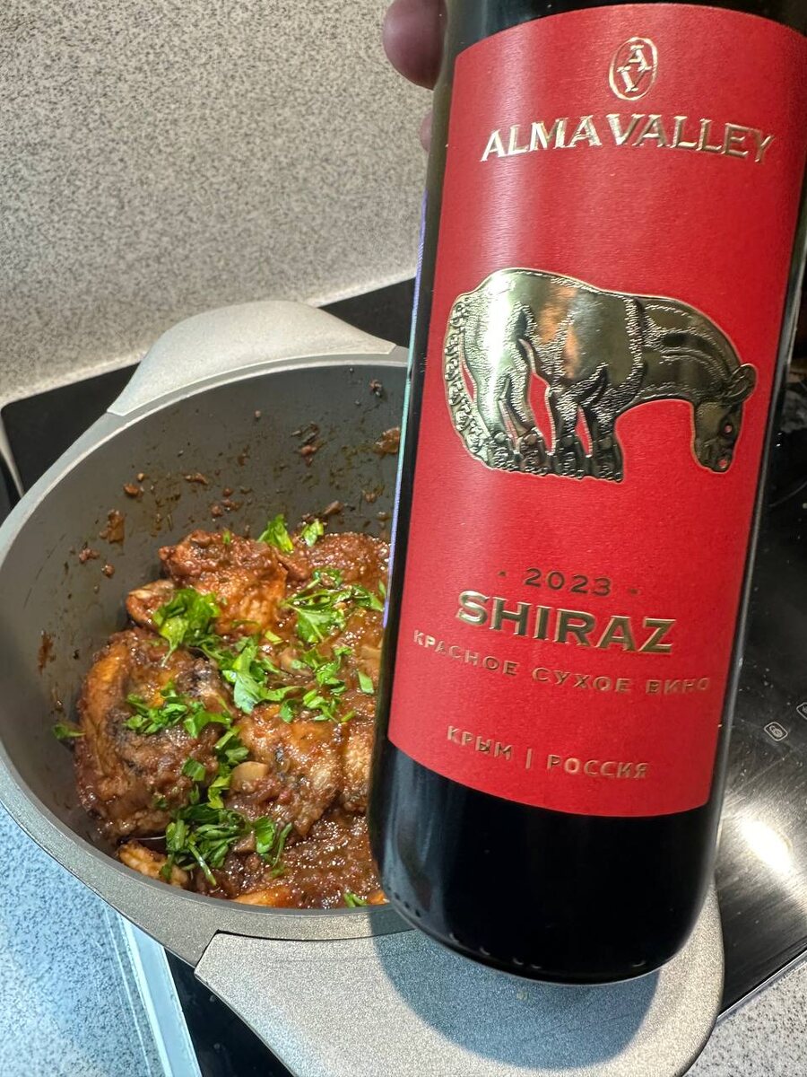 Совет: Используйте то же вино, что и для готовки, чтобы достичь полной гармонии вкусов.