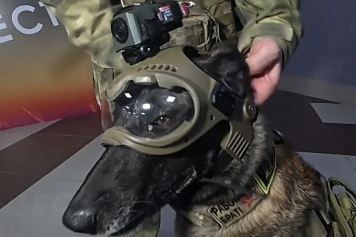 Бойцы отряда «Ермак» разработали для своих собак настоящие хай-тек шлемы. Это не просто защита, а целая система управления с видеокамерой, бронированными очками и динамиком.