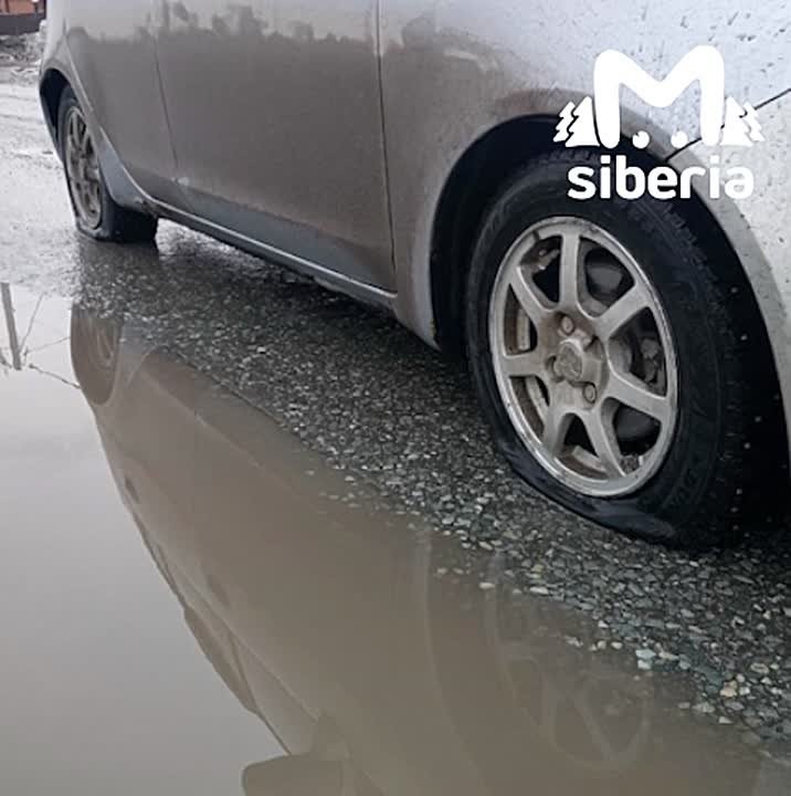 Лужа-шиноубийца найдена в Новосибирске. Водители обнаружили её у Вокзальной, 228. Одна машина осталась сразу без двух колёс.