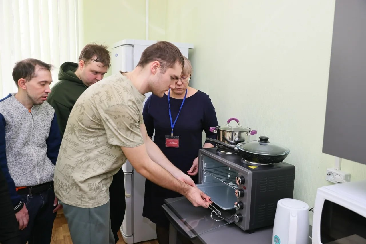 В помещении для социальной адаптации и абилитации оборудованы учебно-тренировочные модули, имитирующие условия городской квартиры: «спальня», «ванная комната», «кухня». Это поможет людям с нарушениями ментального здоровья научиться самостоятельному проживанию и снизит случаи госпитализма – привыкания к специальными условиям интернатов.
