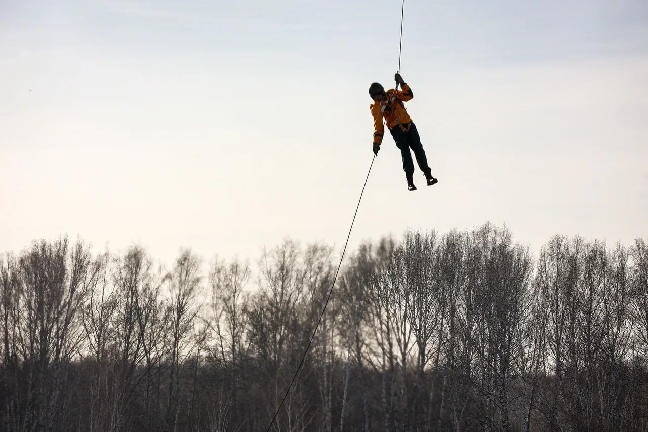 Пожарный десант отработал спуски с вертолёта под Новосибирском