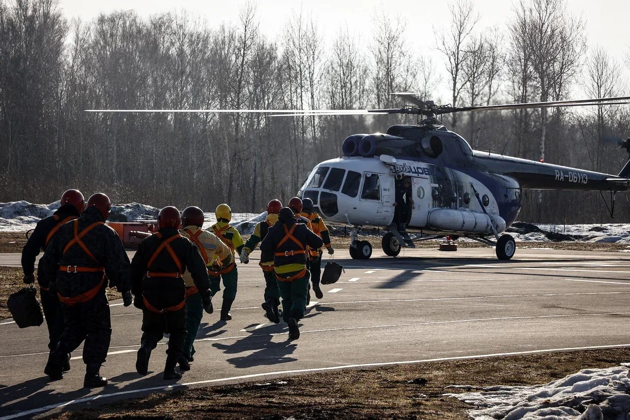К пожароопасному сезону готовятся бойцы Новосибирской базы авиационной охраны лесов. Сегодня устроили учения в воздухе. На вертолётной площадке десантники-пожарные проверили свои умения высаживаться из Ми-8 с высоты от 10 до 40 метров.