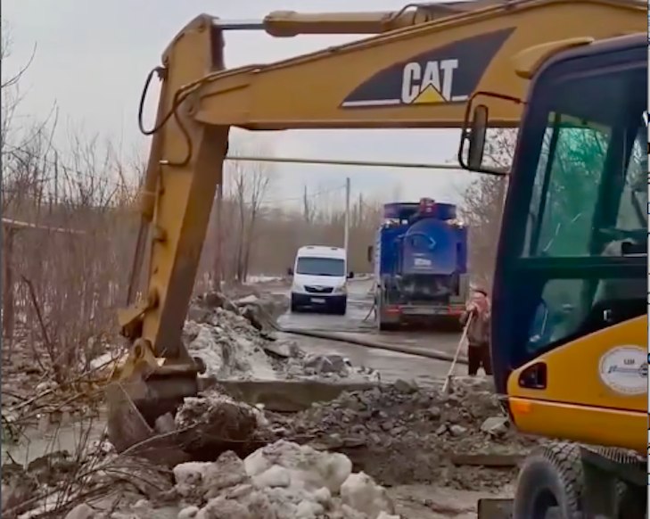 Дорогу разрыли в Октябрьском районе Новосибирска для пропуска талых вод