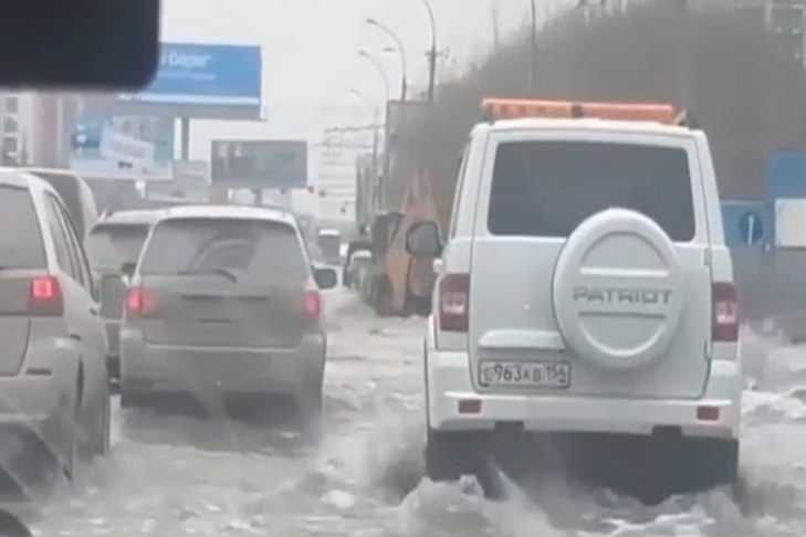 Талые воды хлынули на Ипподромскую в Новосибирске со стороны «Плехановской»