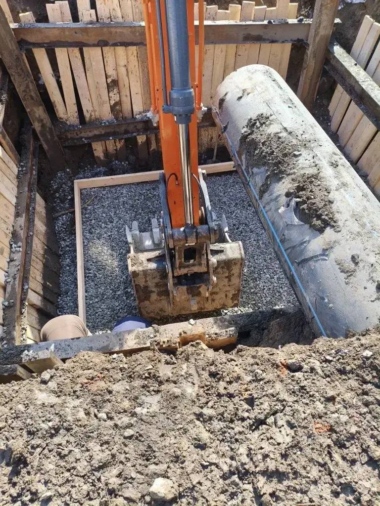 Основные работы на объекте уже выполнены. Построен новый участок самотечной ливневой канализации протяжённостью почти 90 метров, обустроены перепадные и смотровые колодцы.