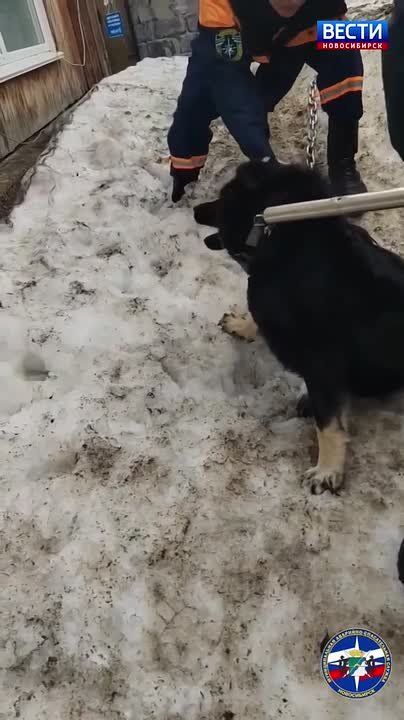 Новосибирские спасатели пришли на помощь собаке, лапа которой застряла в цепи.