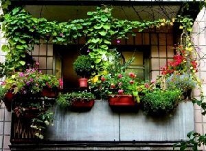 Основной площадью для размещения будут полы балкона. Тут удобно размещать крупные и тяжелые цветы, вдобавок их можно комбинировать с высокими стеблями. Размещение горшков можно организовать симметрично по центру или по бокам, однако стоит избегать перегрузки пространства.