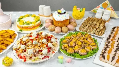Это меню на Пасху порадует всех: как любителей сладостей, так и тех, кто отдает предпочтение сытным мясным угощениям. Такие блюда легко приготовить, и они добавят изюминку в ваше праздничное застолье. Дайте волю своей фантазии и создайте незабываемый Пасхальный стол!