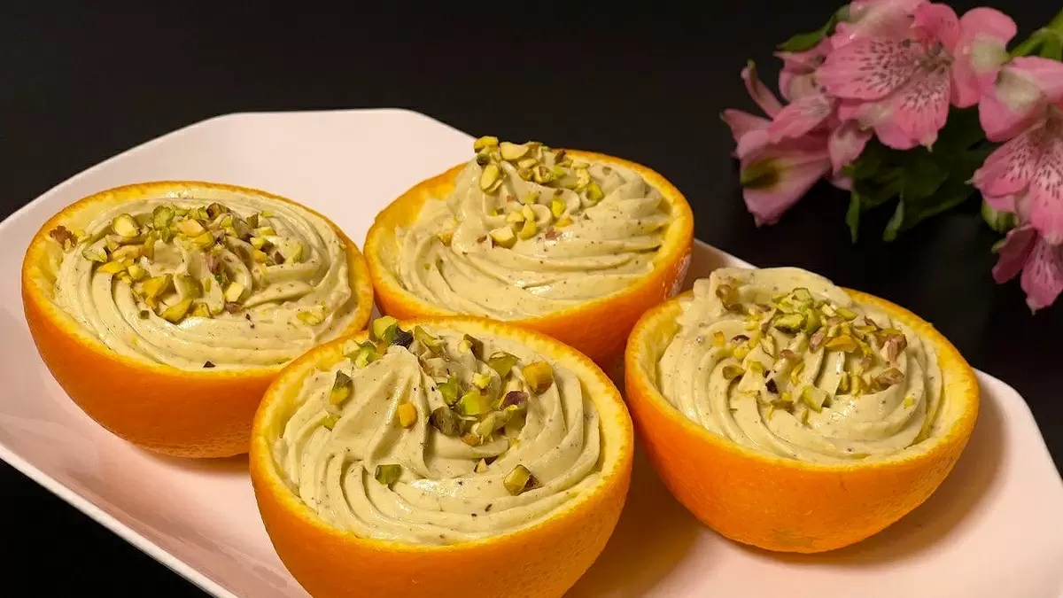 Этот простой в исполнении десерт порадует не только вкусом, но и эффектной подачей. Используя в качестве мисочек половинки апельсина, можно создать уникальную подачу для любого торжества или ужина с друзьями. В оригинальном рецепте предлагается фисташковый крем, который легко разнообразить другими вариантами, по желанию.