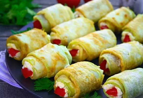 Кулинарные гурманы будут в восторге от оригинального рецепта рулетиков, приготовленных из свежих кабачков, плавленого сыра и сочных помидоров. Это не просто закуска – это универсальное блюдо, которое украсит любой праздничный стол и порадует гостей необычным вкусом.