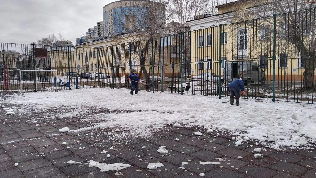 Специалисты МАУ «Стадион» убирают снег и мусор, проверяют ограждения, конструкции и покрытия. Проводят текущий ремонт.