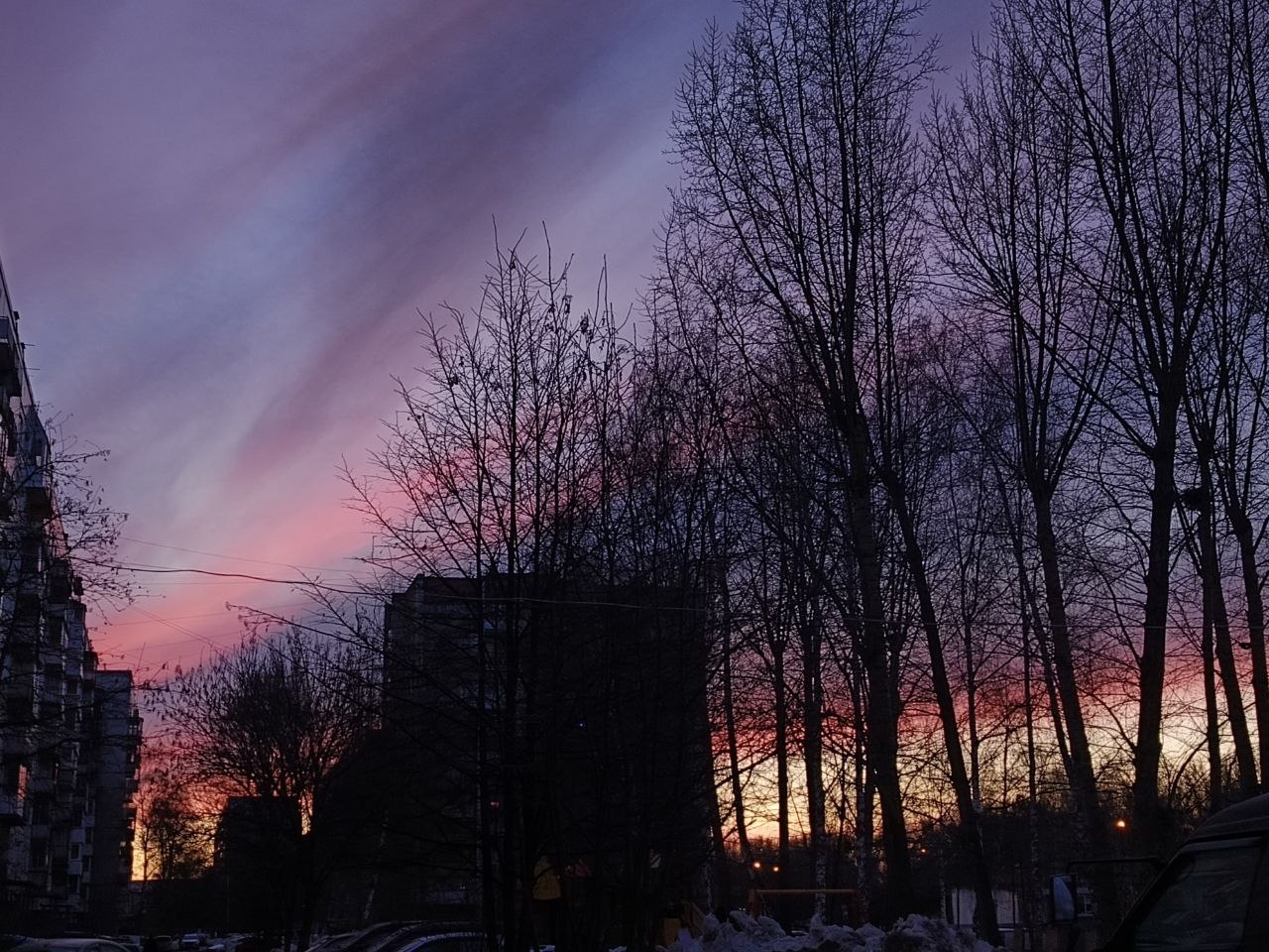 Небо над городом сегодня — как картина. Фиолетовый, розовый, немного золотого… Идеальный момент для красивых фото