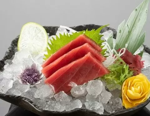 При приготовлении сашими используются только лучшие сорта тунца. При подаче Блюфина, нарезанного тонкими слайсами, раскрывается весь вкус, а Бигай радует своей упругостью.