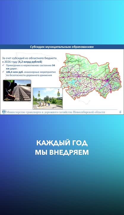 В Новосибирской области на 2026 год запланировано более 23 млрд рублей на развитие дорожной инфраструктуры – ремонт, содержание, реконструкцию и строительство. Объем субсидий муниципальным образованиям области на этот год составляет 4,2 млрд рублей, из них – 2,9 млрд выделяется Новосибирску. Благодаря этим средствам запланирован ремонт 56,7 км и капремонт 1,6 км дорог, ввод в эксплуатацию четырех новых мостовых сооружений, а также продолжение ремонта Димитровского моста и начало работ по возведению моста в Искитиме. Особое внимание уделяется вопросам безопасности – на эти цели выделено более 774 млн рублей, которые будут направлены на устройство пешеходных переходов, тротуаров, ограждений, остановок, освещение и светофоры.