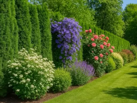 При создании живой изгороди важно выбирать многолетние растения. Это позволит сэкономить время на уходе и получать стабильный результат на многие годы.