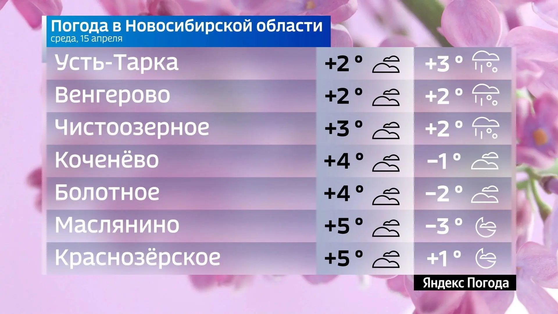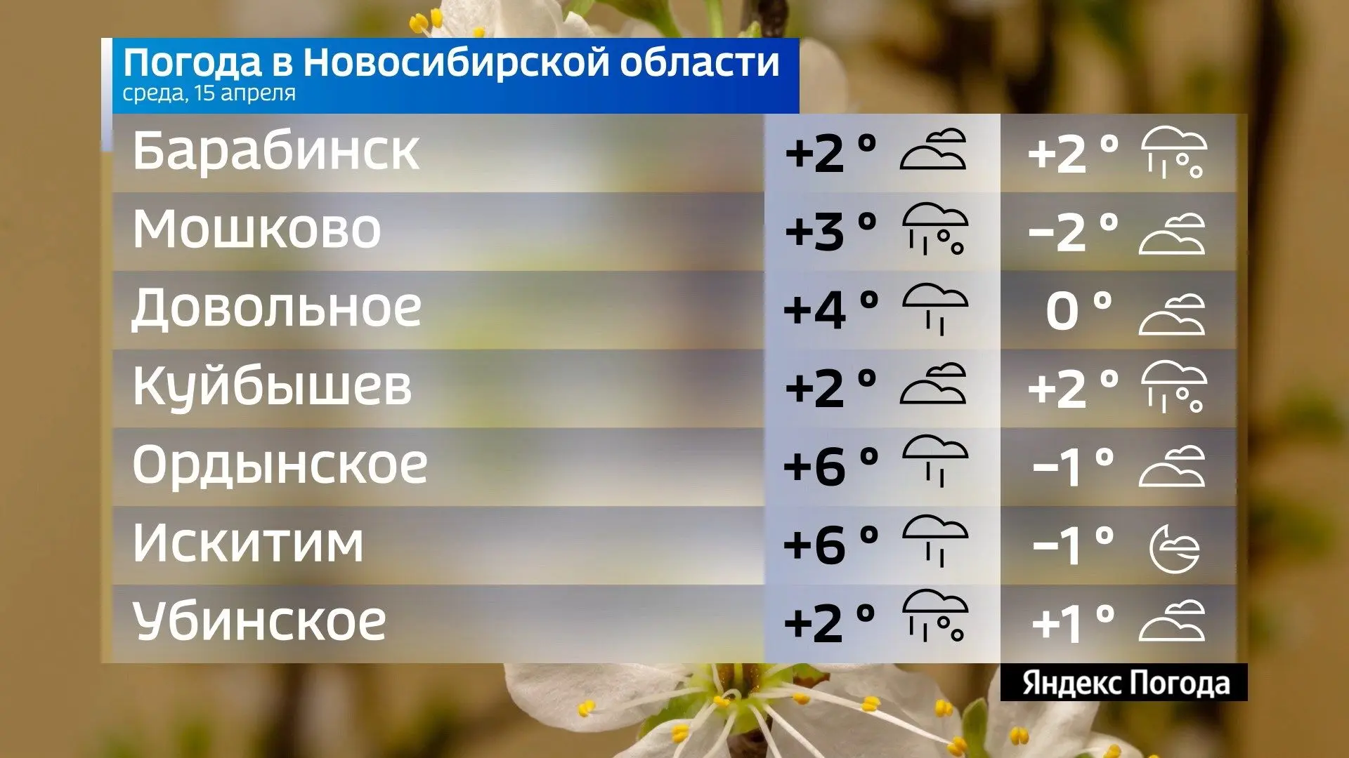 Прогноз погоды на 15 апреля 2026 года в Новосибирской области.