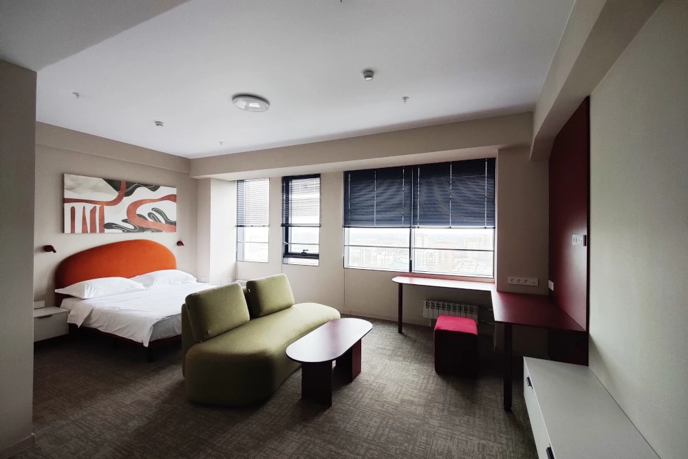 Трёхзвёздочная гостиница рассчитана на 200 номеров категорий «студия» и «апартамент». 17-й этаж предназначен для гостей с ограниченными возможностями передвижения.