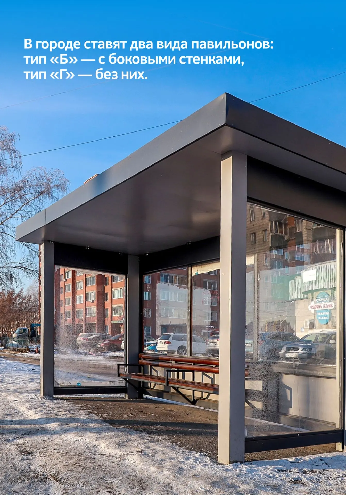 В Новосибирске продолжают обновлять остановочные павильоны — устаревшие конструкции меняют на современные. В этом сезоне установят 74 штуки, на это из городской казны выделят 116,4 млн рублей. Новые модули надёжные и износостойкие. Они изготовлены из алюминия и нержавеющей стали. Стёкла состоят из прочного триплекса, поэтому в случае повреждений не разобьются на осколки. Увеличенная площадь крыши лучше защищает от непогоды. Скамейки сделаны из негорючего материала.