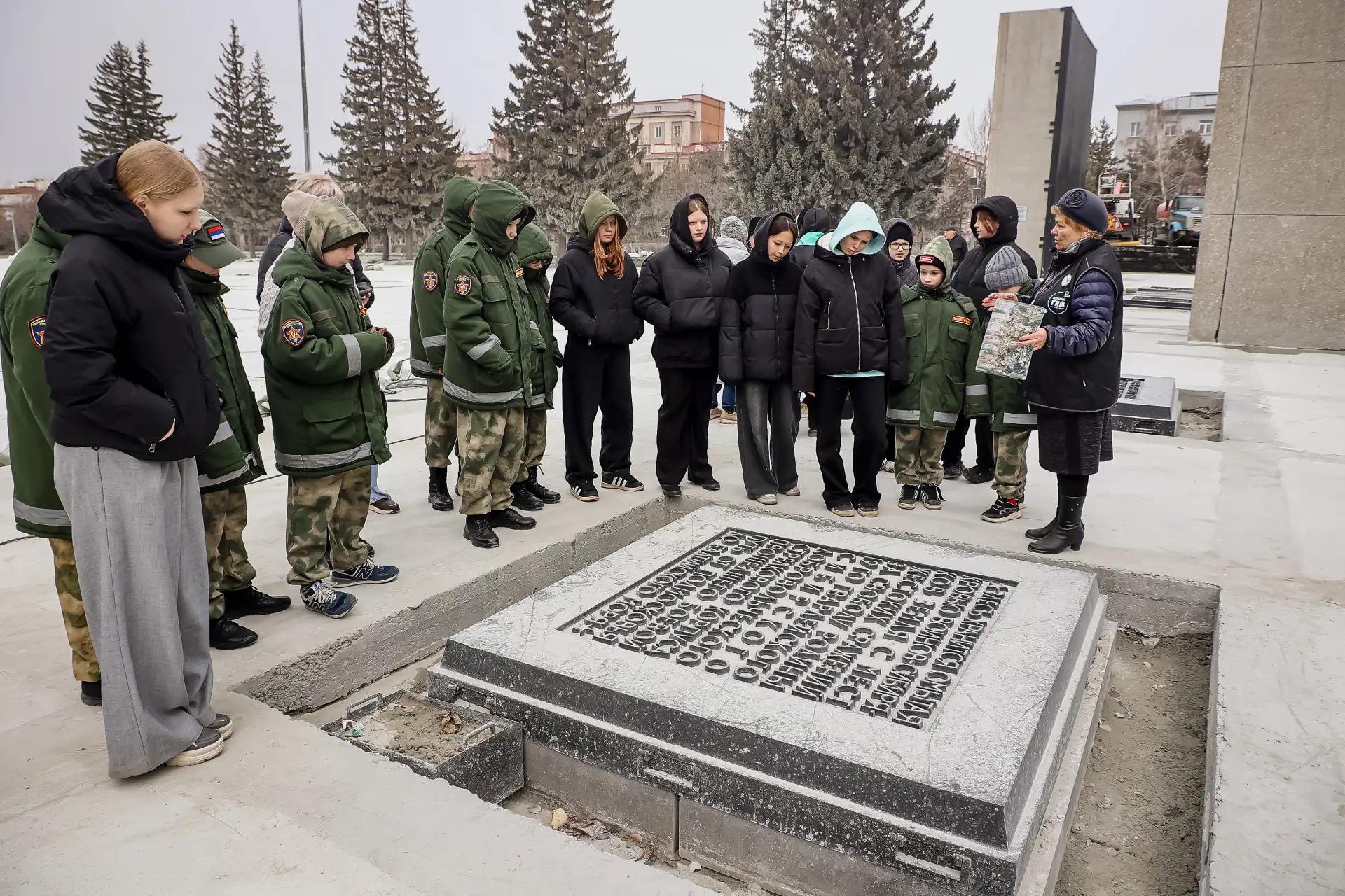 На экскурсии «Рать сибирская поднялась на решительный бой» ребята узнали о том, как и кем создавался памятник сибирякам — участникам Великой Отечественной войны, какие исторические сцены воплощены в монументальных сооружениях Монумента Славы, как жил Новосибирск в военные годы и какой вклад город внёс в победу — как помогал фронту, за какие заслуги получил почётное звание «Город воинской и трудовой славы».
