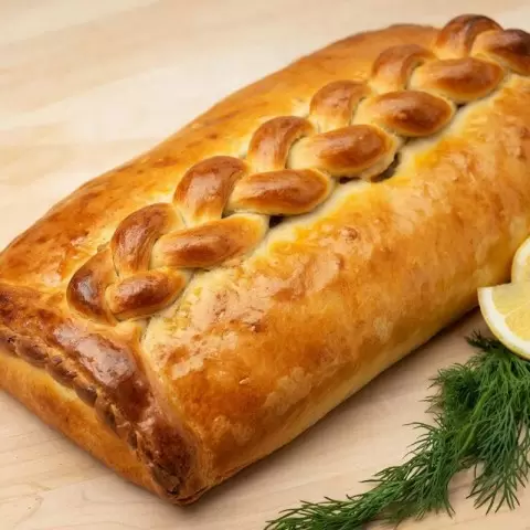 Название «кулебяка» коренится в древнерусском глаголе «кулебячить», что переводится как «мять, лепить руками». Кулебяка известна многослойной начинкой, которая может содержать различные ингредиенты. Хотя вариаций множество, рыбная кулебяка занимает особое место, особенно в северных регионах страны, где рыба стала основным элементом рациона.
