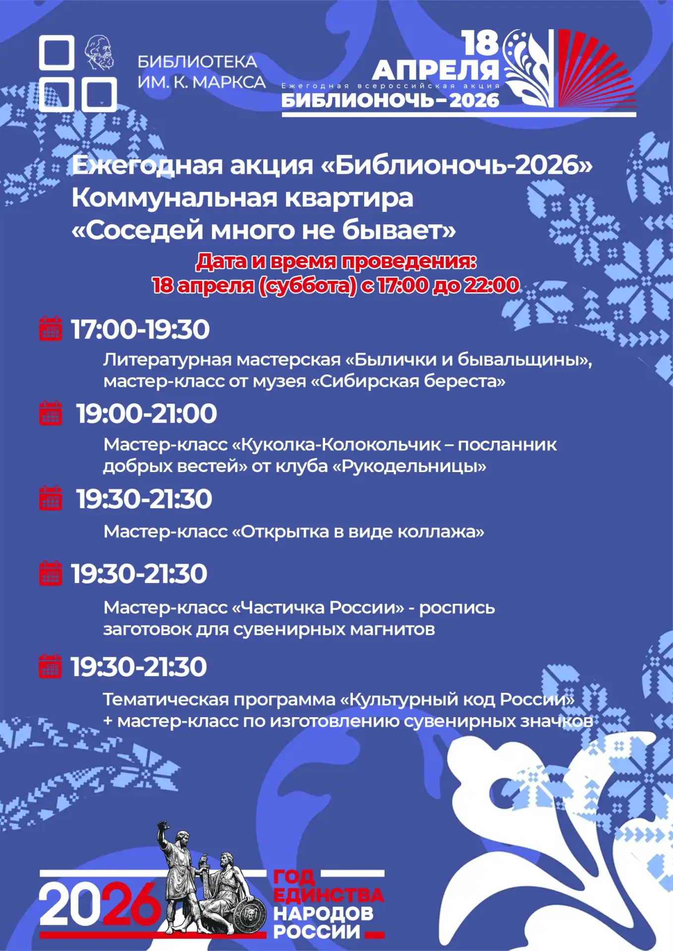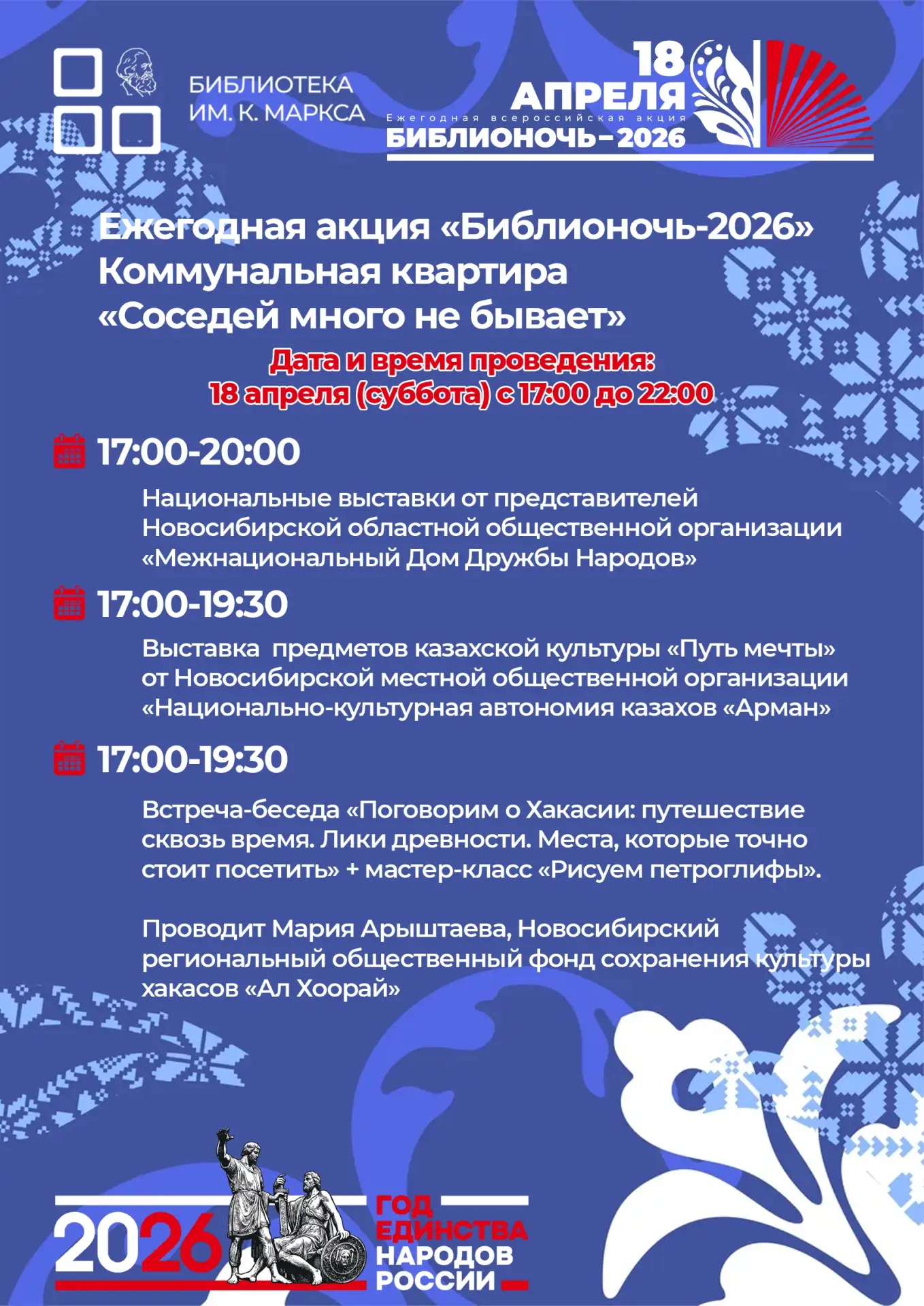 Библиотека им. К. Маркса приглашает новосибирцев на «Библионочь-2026»