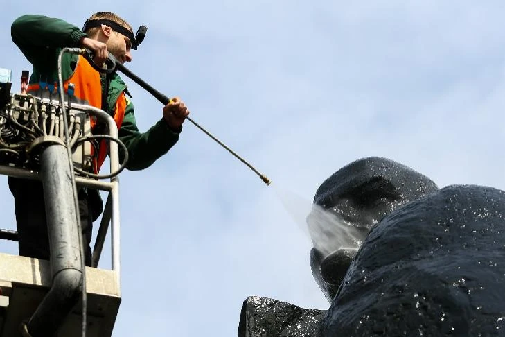 Ели и Ленин принимают душ: в центре Новосибирска началась весенняя уборка