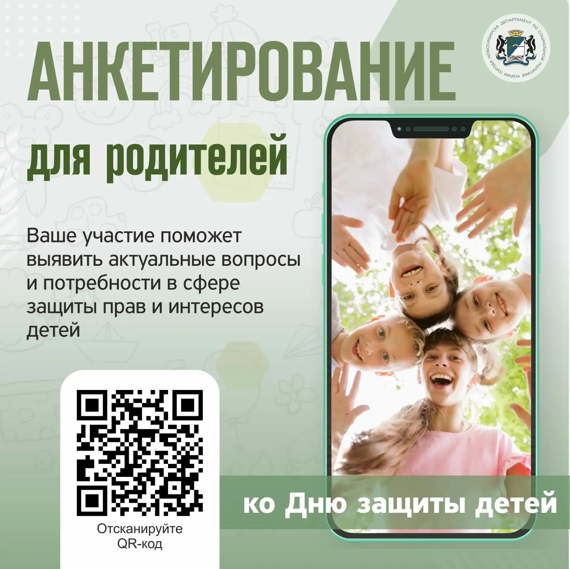 Департамент по социальной политике мэрии Новосибирска приглашает родителей принять участие в онлайн-анкетировании, которое поможет выявить актуальные вопросы и потребности семей с детьми.