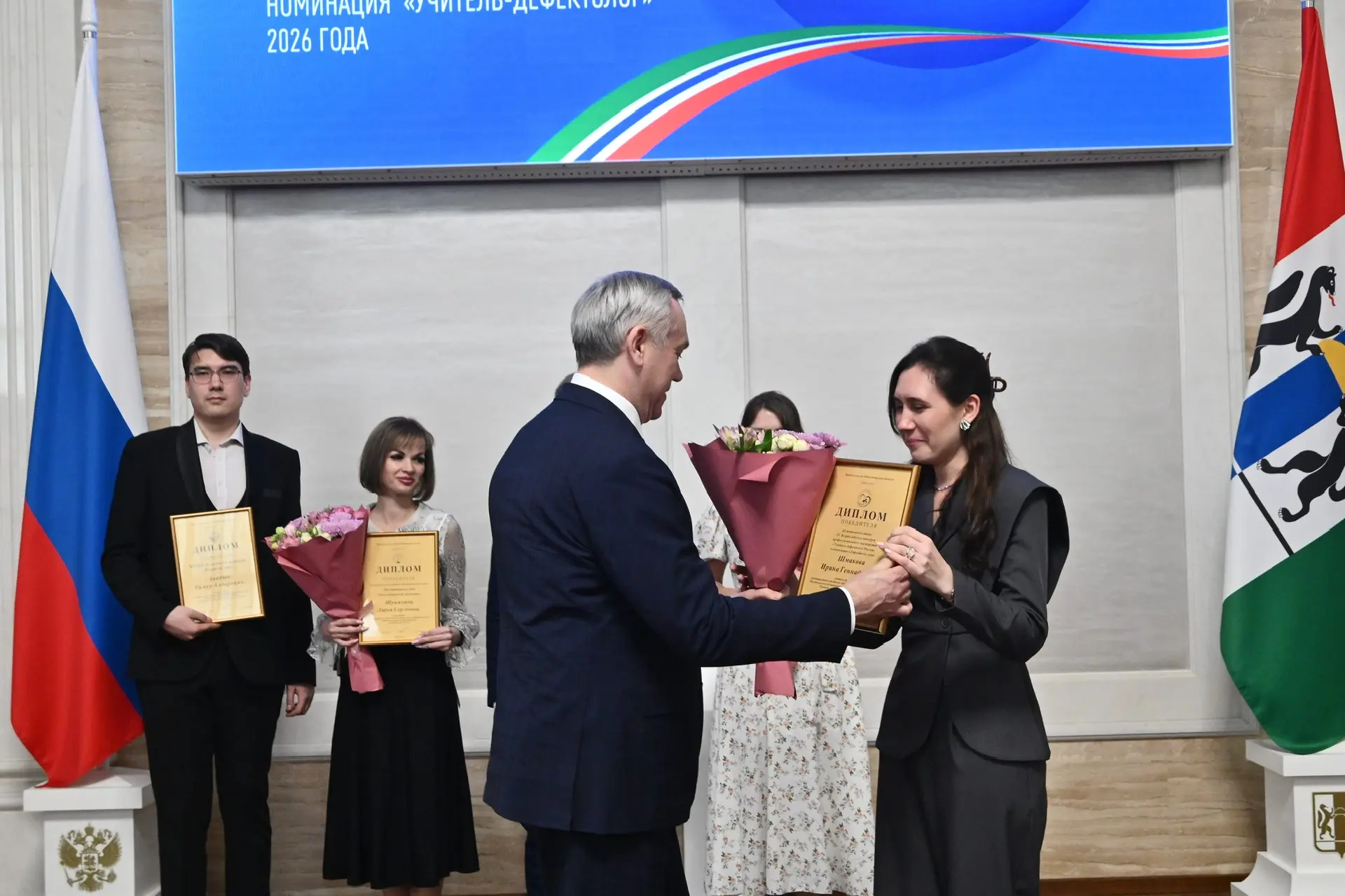 Вручил награды победителям профессиональных педагогических конкурсов Новосибирской области 2026 года, которые проходят уже в 33-й раз. Участие в них принимают самые выдающиеся представители сферы образования нашего региона. Их труд вдохновляет коллег, становится примером для молодежи. Хотелось бы отметить сплоченность педагогического сообщества Новосибирской области – атмосферу поддержки, сотрудничества и взаимопонимания. Наши учителя проявляют высокую активность и инициативу – участники находятся во всех номинациях. Например, для участия в одной из самых молодых номинаций конкурса – «Мастер года», которая проводится всего пять лет, в этом году на отборочный этап заявилась половина педагогов этой специальности – суммарно это более 1600 человек. В нашем регионе работает множество учителей и педагогов, чье неоценимое участие в развитии системы образования создает прочный фундамент для совершенствования сферы.