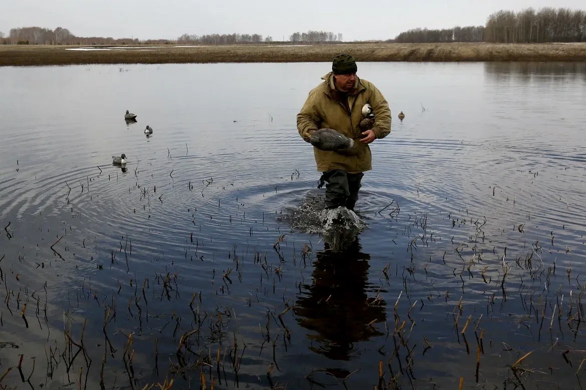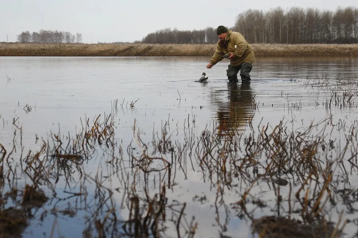 Особенность апрельской охоты — работа с подсадной уткой. Это не просто охота, а целый ритуал. Селезень весной идет на зов «дамы», и стрелять в саму утку категорически запрещено. Инспекторы заглядывают в «скродки» (специальные шалаши), проверяя, не спрятал ли кто под камышом запрещенные устройства, сверяют охотбилет и ружье.
