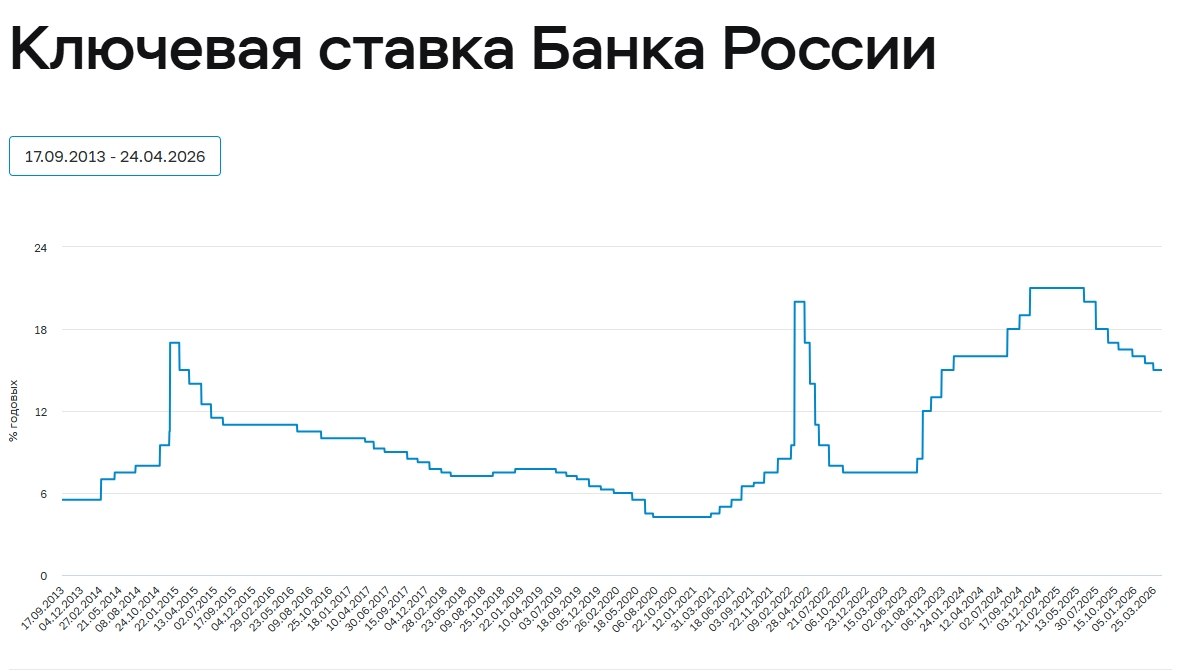 Постепенное снижение ключевой ставки происходит с июня 2025 года. До этого в течение полугода показатель держался на пике — 21%.
